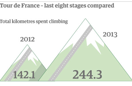 Joseph Minard, 1869. - source: [Wikipedia](https://fr.wikipedia.org/wiki/Charles_Joseph_Minard#/media/File:Minard.png)] --- name:napoleon class: inverse, center, middle # Donner à voir : l'évolution du dénivelé du tour de France  .small[[*The Guardian, Sport*](https://www.theguardian.com/sport/2013/jul/12/tour-de-france-2013-pain) ] --- class: middle # 3. Comment faire ? ### Techniques et méthodes pour concevoir un projet de visualisation --- class: middle ## Un projet de visualisation  .small[d'après Stefaner, in [GhostWeather](http://blogger.ghostweather.com/2013/11/data-vis-consulting-advice-for-newbies.html) ] --- class: middle ## Poser une question - esquisser une hypothèse?  .footnote[.small[d'après *Food Consumed in 2010* de [L. Manning](https://www.flickr.com/photos/laurenmanning/5674438518/in/album-72157626586750924/)]] --- # Explorer les données ### Construction des "obtenues"