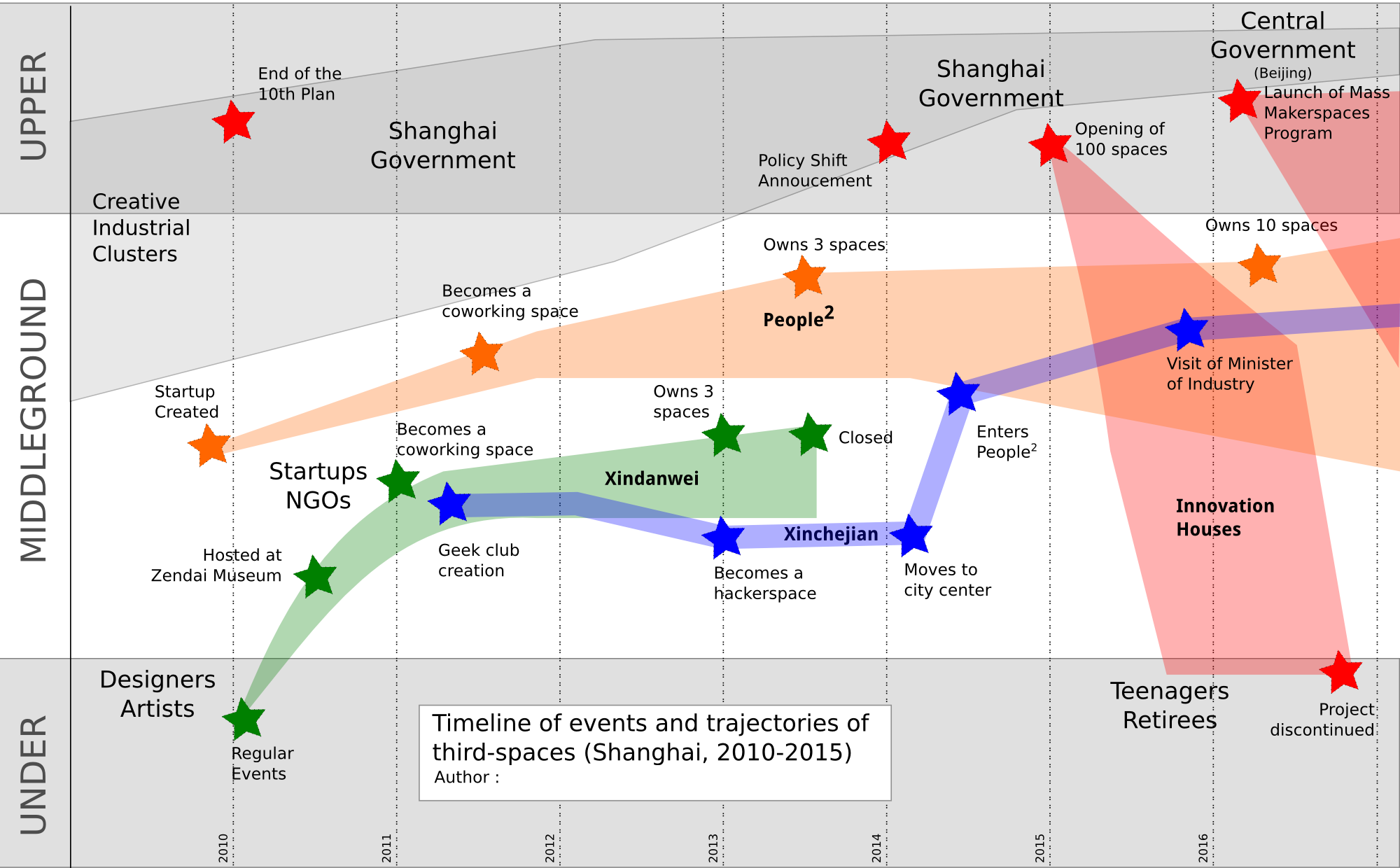(political) cultures ## A diverse set of ideas and practices ## No unified stance on technology --- class: middle, center # 2. The makers and their spaces ## Spatial forms of making --- class: inverse background-image: url(../EPFL-GoingEast/img/betahaus-Barcelona.jpg) # Coworking space Beta Haus, Barcelona --- class: inverse background-image: url(../EPFL-GoingEast/img/noisebridge-workshop.jpg) # Hackerspace Noisebridge, San Francisco --- class: inverse background-image: url(../EPFL-GoingEast/img/articlect-toulouse.jpg) # Fablabs Artilect, Toulouse --- class: inverse background-image: url(./img/hackuarium.png) # BioHack Lab Lausanne, Switzerland --- class: center # Blurry definitions ### ...that failed to acknowledge the diversity of initiatives .col-one-half[ .small[(Bottollier-Depois, 2012)]  ] .col-one-half[ .small[(MoviLab, 2016)]  ] --- class: inverse background-image: url(./img/repair-cafe.png) # Repair Cafes ## Fix and learn to fix your machines Many Cities over Europe and US --- background-image: url(./img/atelier-paysan.png) # L’Atelier Paysan ## "Technological sovereignty" for agricultors Rhone-Alpes/Bretagne, France --- class: inverse background-image: url(./img/fabrique-gonesse.png) # La Fabrique de Gonnesse ## Maker Education for Kids and Teenagers Gonesse, France --- class: inverse background-image: url(./img/erasme.jpg) # Erasme ## Living Lab from Local Government Lyon, France --- class: inverse, center, middle # Local, territorialized forms ### Deeply tied to the local context and agenda ### Parts of global networks and narratives --- class: middle, center # 4. 创客 (chuangke) ## A case study from China --- class: inverse background-image: url(../pspe/img/creativeparks.jpg) # Planners and the "Creative City" ## 12th Shanghai Urban Plan 2006-2015 ### Creative Industriel Clusters (CICs) .footnote[ - CICs in Shanghai have largely fail to deliver services to SMEs - Large companies have emerged (mostly state-owned) (Zhen &Chan, 2014) - No "creative class" has emerged (O' Connor & Gu, 2012) - Not supporting SMEs (Rossiter, 2010) ] --- background-image: url(../EPFL-GoingEast/img/xindanwei.jpg) class: # Meanwhile... ### Xindanwei (新单位) ### 2010-2013 (RIP) --- background-image: url(../pspe/img/xcj.JPG) class: inverse ## Xinchejian (新车间) ## 2011-now --- background-image: url(../pspe/img/peopleSquared.jpg) class: inverse ## People Squared (联合创业办公社) ## 2011 --- background-image: url(../pspe/img/innovationHouses.JPG) class: inverse ## Innovation Houses (创新屋) ## 2014 --- ## Launch of the "Mass Makerspaces" program (2015) ## Part of "Made in China 2025"  --- ## Timeline of events in Shanghai  source: Renaud et al, 2016 --- class: inverse background-image: url(../EPFL-GoingEast/img/chuangke.jpg) ## The "chuangke" (makers) are everywhere --- class: inverse background-image: url(./img/hqb-chuangke.jpg) ## Huaqiangbei, the new "paradise for makers" --- class: inverse background-image: url(../EPFL-GoingEast/img/empty.jpg) ## Thousands of spaces open/close across China .footnote[ A "makerspace" in Chengdu, 2016] --- class: inverse background-image: url(./img/tencent-makerspaces.png) ## 创客空间: no machines, more similar to an incubator ### The "chuangke" drift away from the "maker" .footnote[ Tencent Makerspace in Chengdu, 2017] --- class: inverse # The quest for 'chuangke' leadership .col-one-half[  .small[source: people.cn - 2015] ]